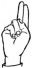 На ћирилици написано САРА КОСНИЋ састоји се из 10 слова [?]. Исписано ћириличном једноручном азбуком за глувонеме:
